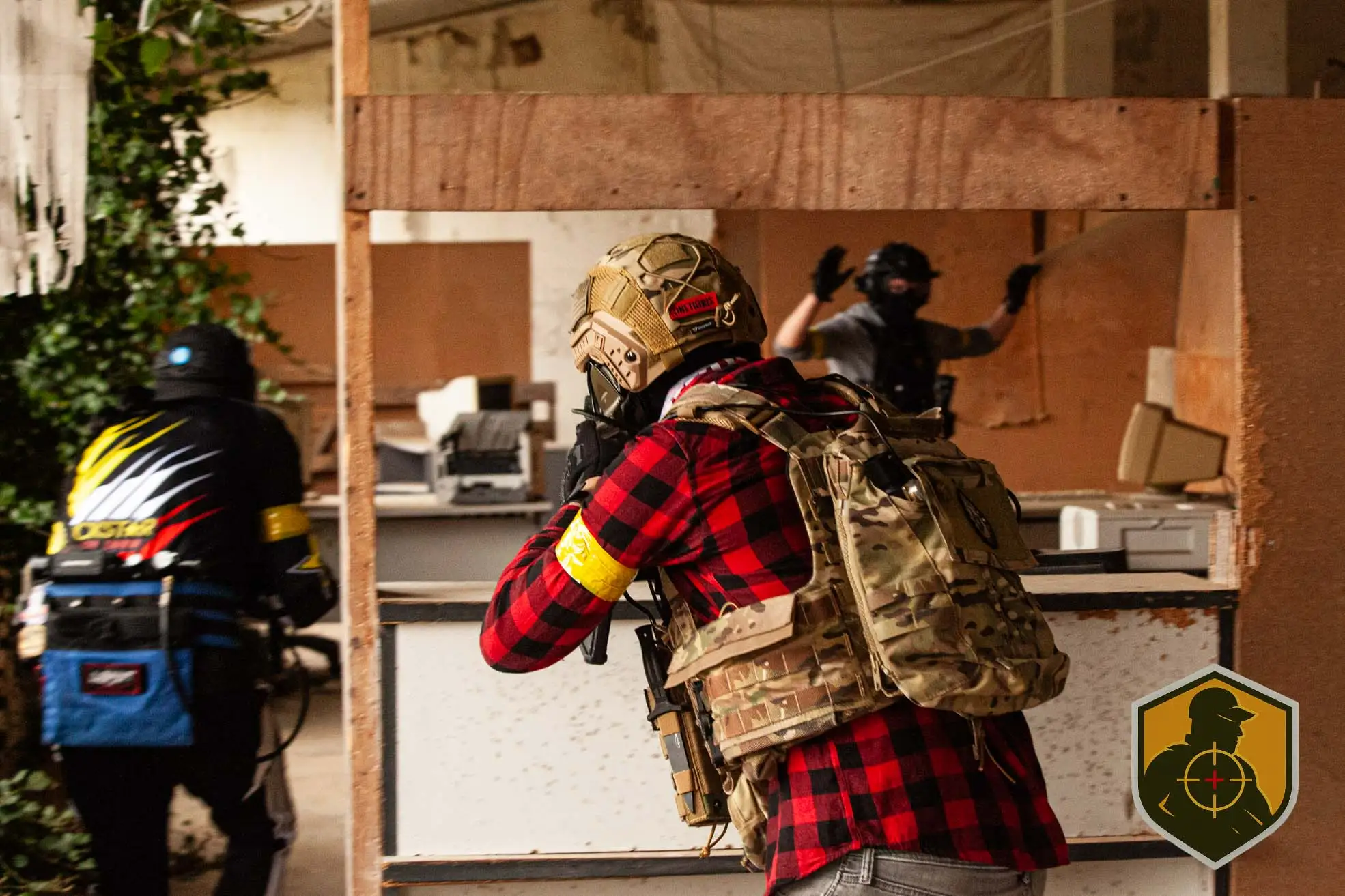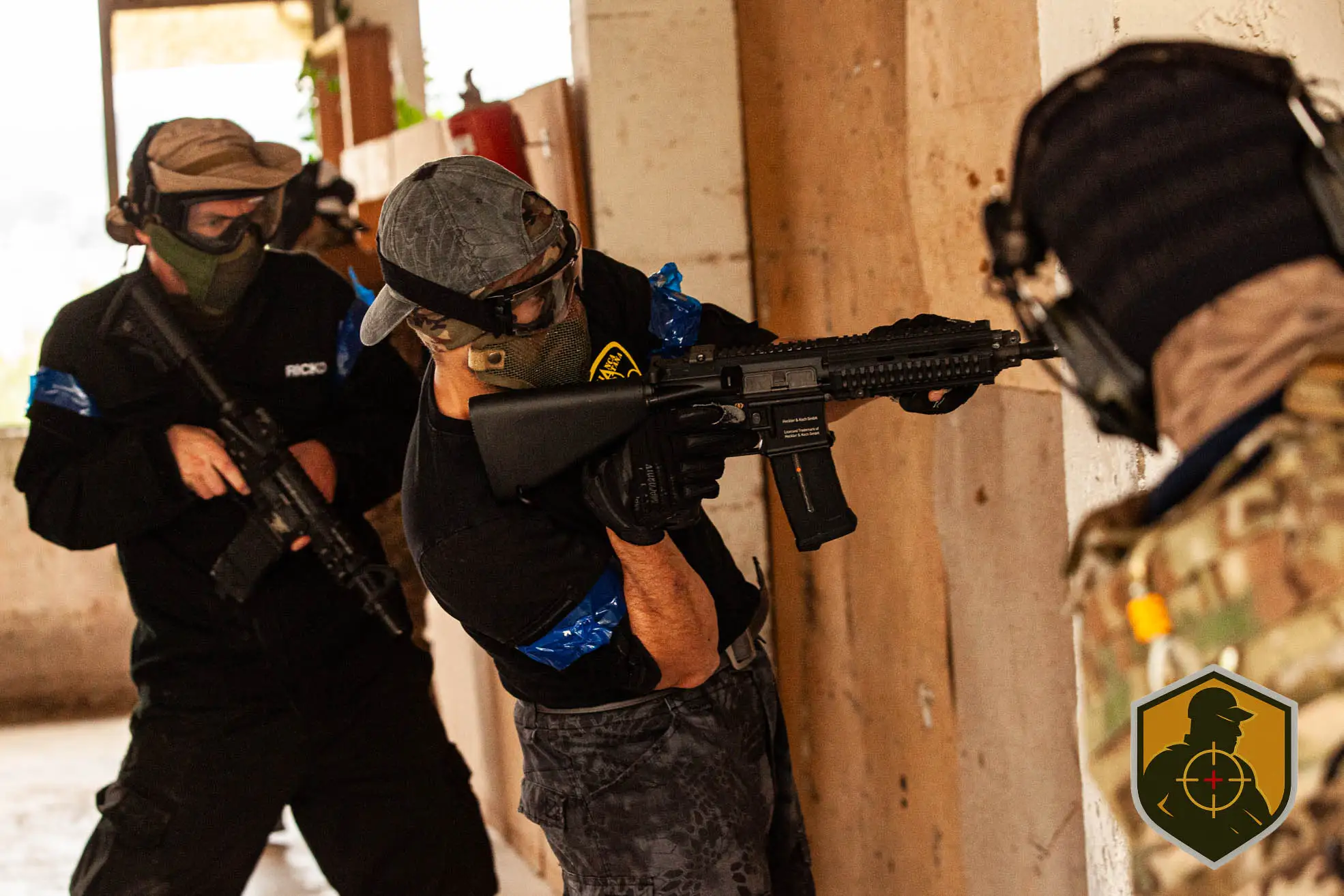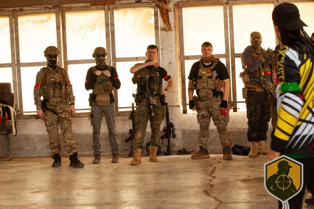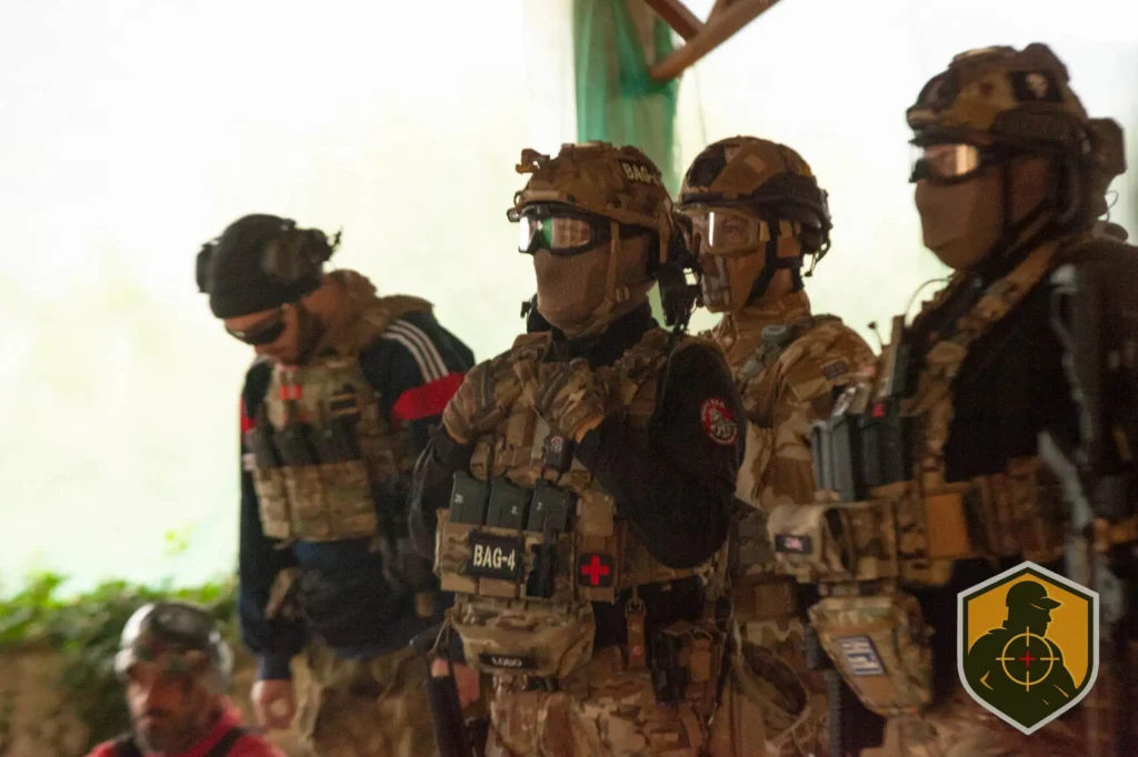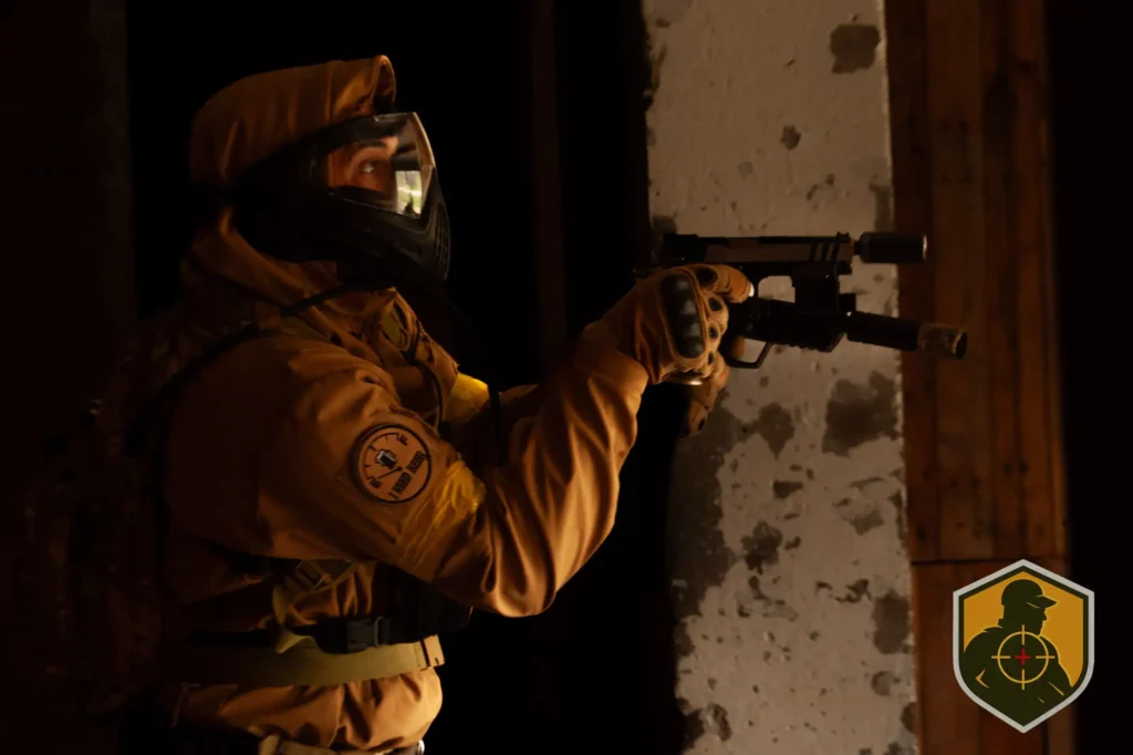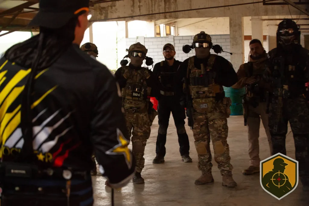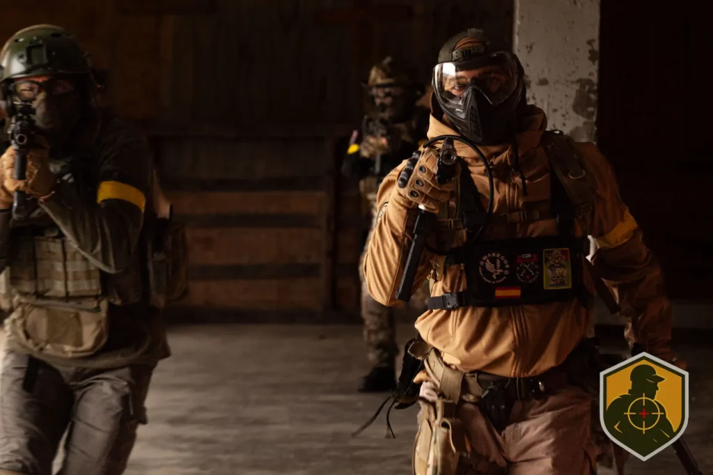 Antes del primer disparo ya estaba pasando algo importante. Ajuste de réplicas, revisión de cargadores, máscaras listas y comunicación entre binomios. El getting ready en speedsoft no es rutina, es preparación mental. Cada jugador sabe que el CQB exige reacción inmediata y control total del entorno.