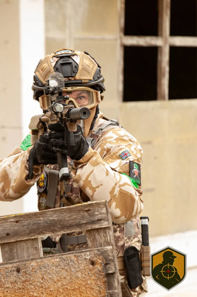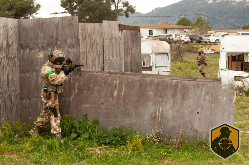 Luego la partida abrió el escenario. Se combinó CQB con zona exterior y el juego cambió, ya no era solo reacción inmediata; apareció la lectura de distancia, el uso de cobertura natural y la gestión del avance más largo.